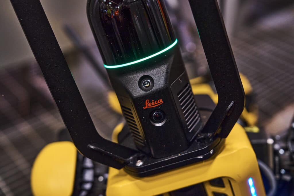 Spot integrates with the Leica BLK ARC, a mobile laser scanning module specifically designed to work with autonomous robots. The BLK ARC mounts directly to Spot and uses its sensors to capture detailed, full-color point cloud data.
