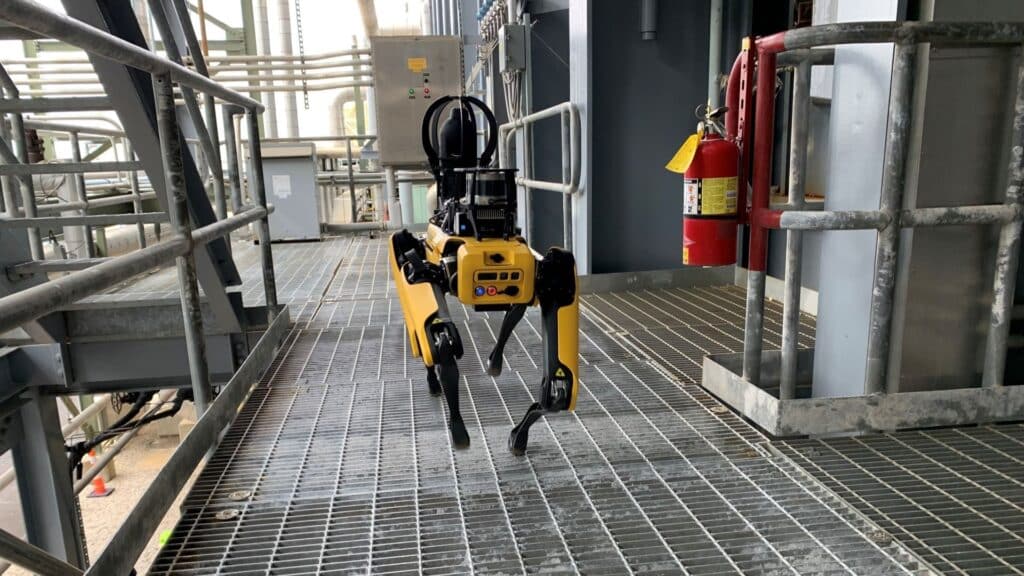 “This unique combination of capabilities—the ability to navigate various environments while also collecting data in a variety of ways—makes Spot a potential fit for utility sites,” Acharya said. “We have rugged terrain, with gravel, metal grating, and stairs. If a technology like Spot can go on autonomous missions, avoid obstacles, and go from one floor to another, there’s a real potential for the robot to help us with selective routine activities and allow our people to make more informed, data driven decisions.”