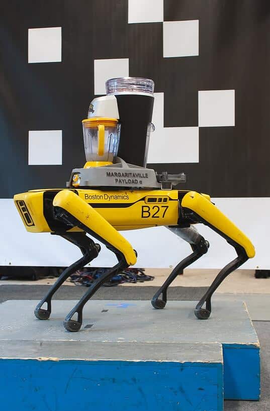 Margarita Spot is basically what you would expect from the name. It’s a custom payload that adds a Margaritaville® drink machine to Spot. You add the ingredients and Spot does the rest—crushing ice, blending the mix, and delivering a mobile margarita.