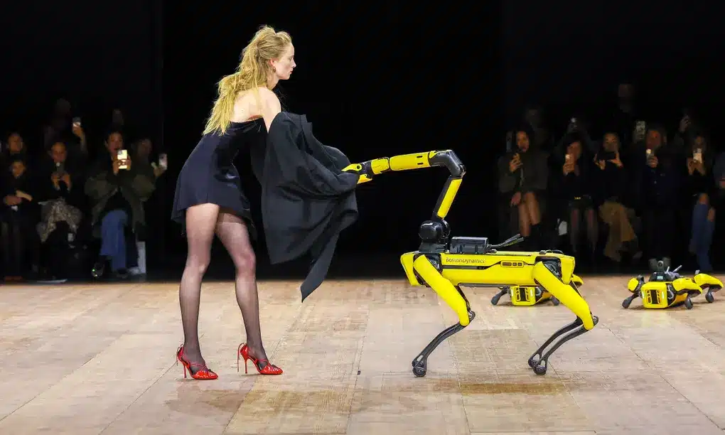 Models and robots share the runway at Coperni fashion show